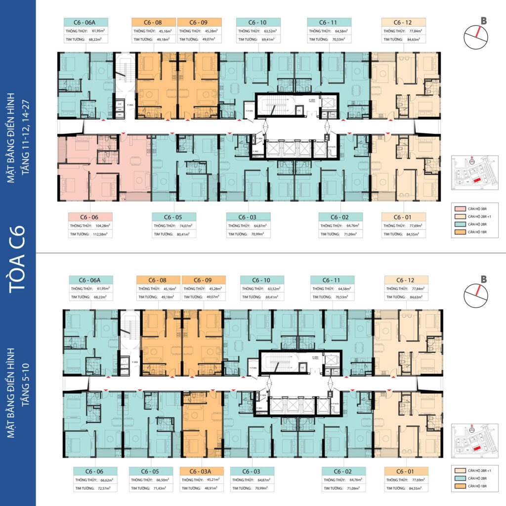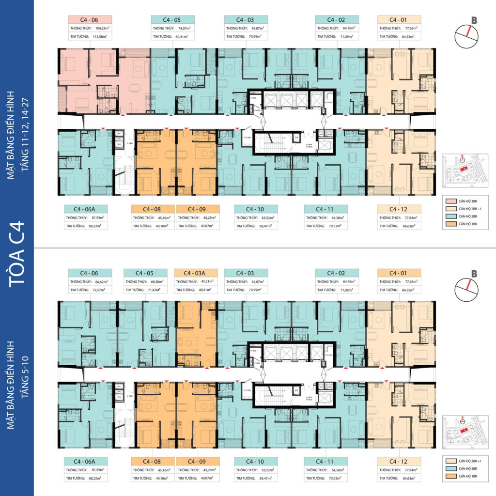 - Căn hộ 3 PN: Diện tích 91.49 m2 – 128.34 m2.