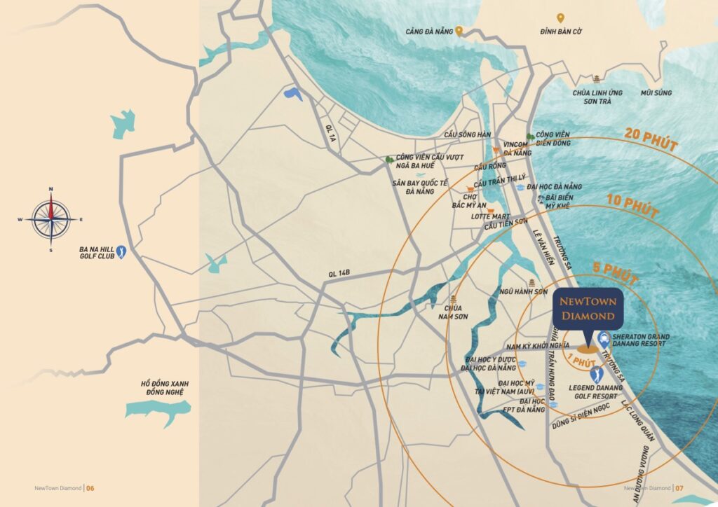 Chung cư Newtown Diamond Đà Nẵng sổ hữu vị trí đắc địa tại Đà Nẵng, nơi đây kết nối vô cùng dễ dàng đến trung tâm và các khu du lịch đẳng cấp cùng khu vực.